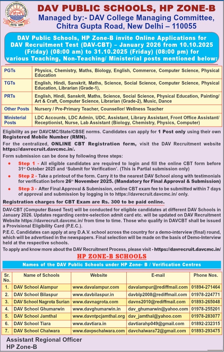 DAV PUBLIC SCHOOL NTPC TOWNSHIP, JAMTHAL P.O. JAMTHAL, TEHSIL SADAR, DISTT.-BILASPUR, HIMACHAL PRADESH-174036 Phone: 01978-283077 E-Mail: [email protected] Website: www.davntpcjamthal.org