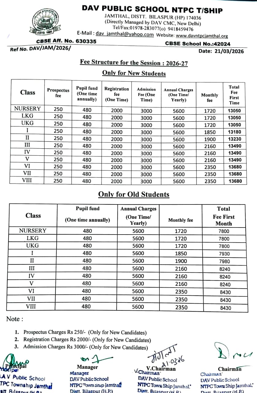 DAV PUBLIC SCHOOL NTPC TOWNSHIP, JAMTHAL P.O. JAMTHAL, TEHSIL SADAR, DISTT.-BILASPUR, HIMACHAL PRADESH-174036 Phone: 01978-283077 E-Mail: [email protected] Website: www.davntpcjamthal.org